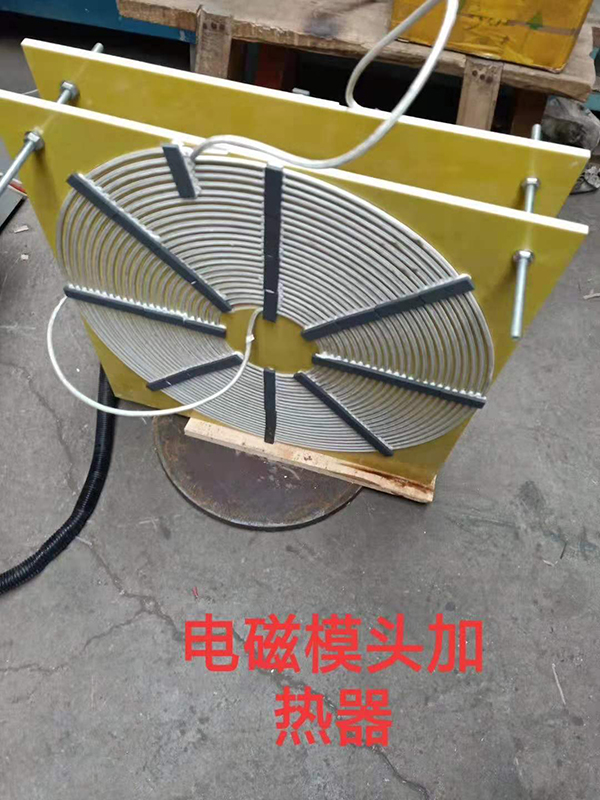 電磁模頭加熱運用電磁感應加熱器的原理,由電磁加熱線圈產生磁場使金屬發熱,自身不發熱,熱效率利用高達98%以上。模頭常見的是擠出機,造粒機,拉絲機等塑膠機械,模頭就是將液體塑膠噴出來之后,利用機器吹出來的風力,將塑體吹附到一定形狀的模腔,從而制成產品的機器。